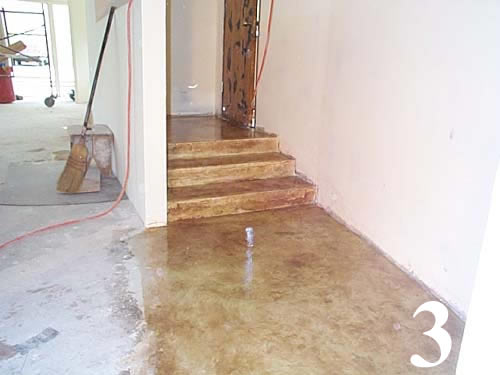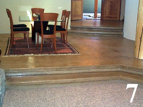 Galleries3" thick concrete topping over wood and radiant heat, cantilever steps, chemical stain and sealed.