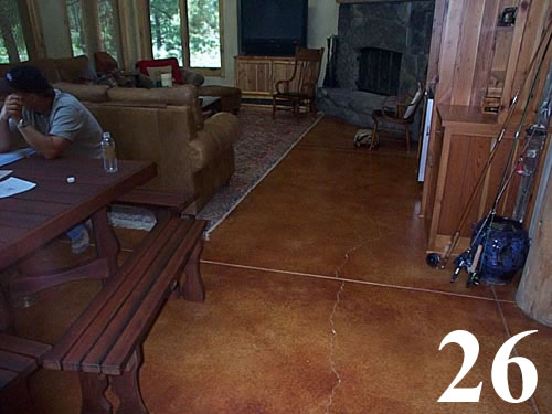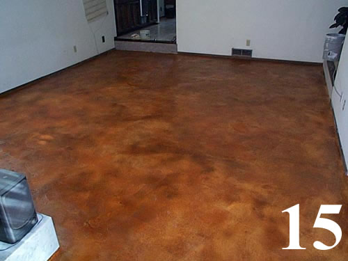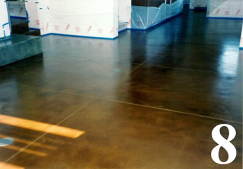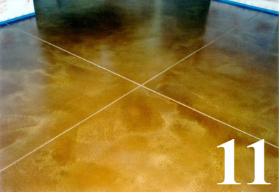Chemical stained floor over existing concrete slab. Saw cut scores 2' O.C.
