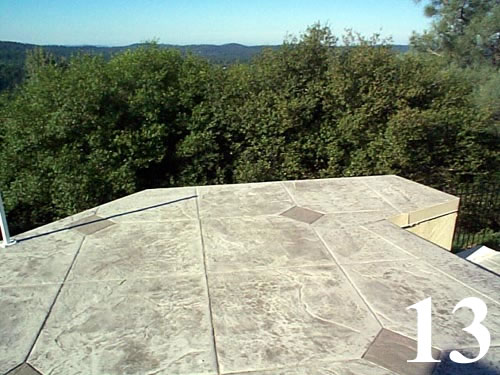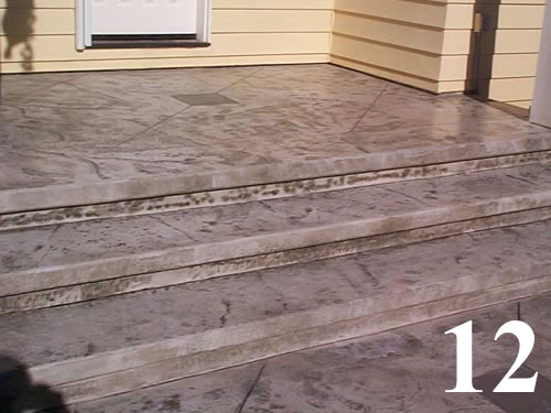 GalleriesDeep slate concrete overlay with textured cantilever steps. Overlay covers raised decks, concrete porches. Thickness varies from 1/4" to 2" in thickness. Diamonds at intersections custom tooled by hand.