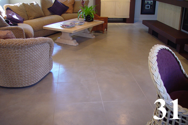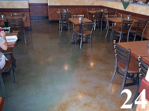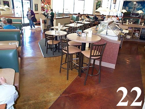 Galleries3/4" thick concrete overlay, color hardened, polished and penetrating stained with saw cut scores @ 2' O.C. grouted.