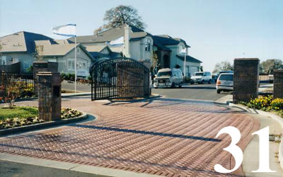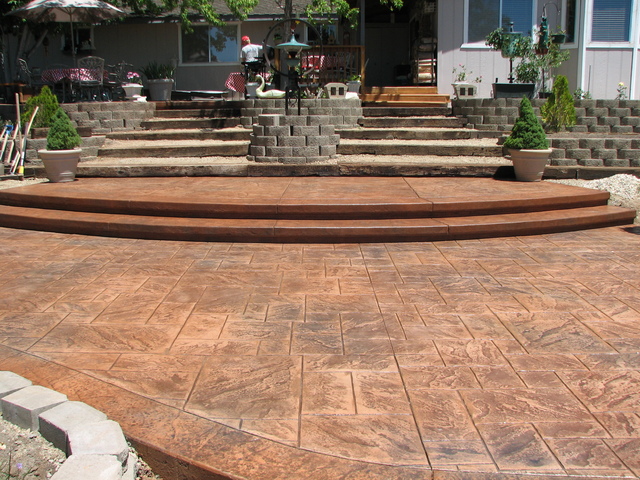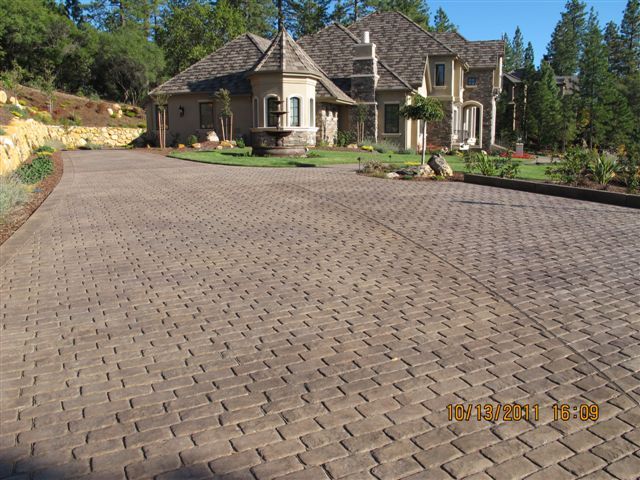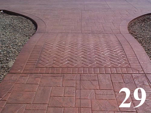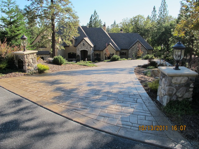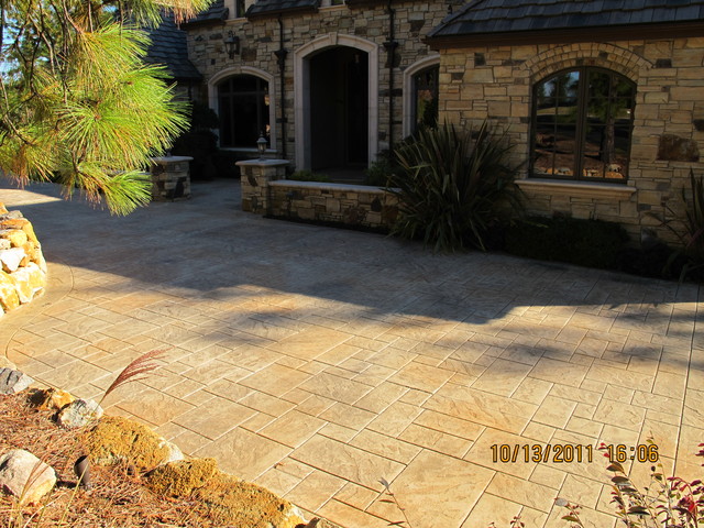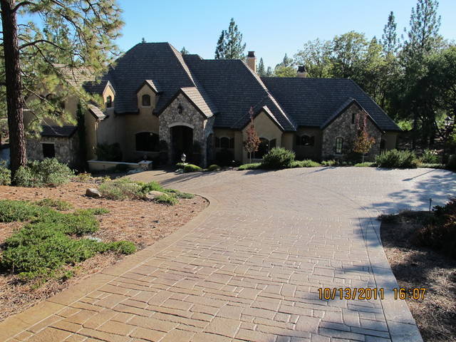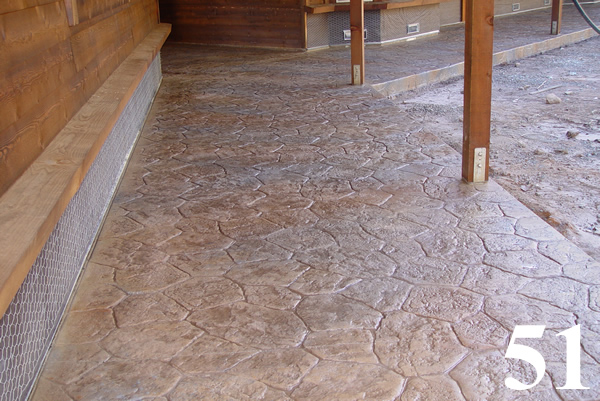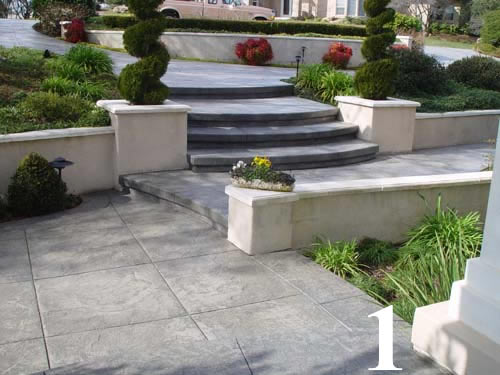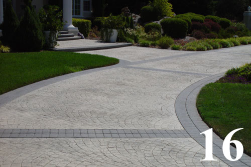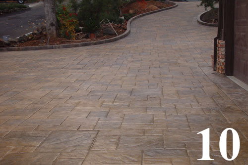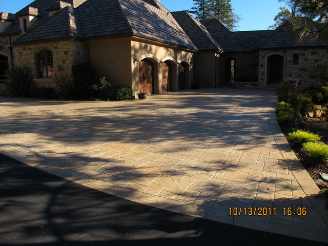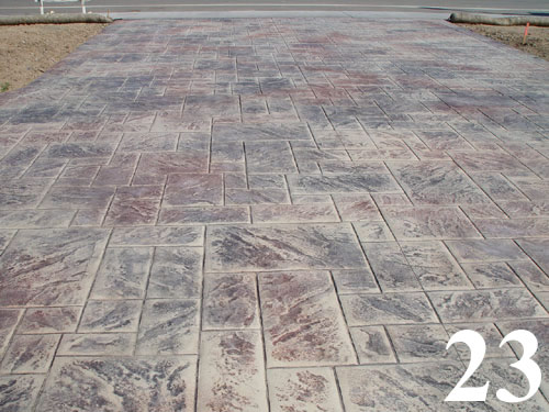 Driveway section is color hardened plum, and antiqued with gray penetrating sealer.