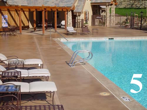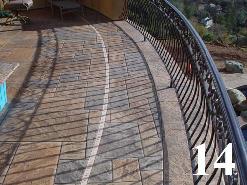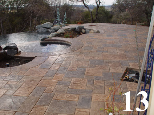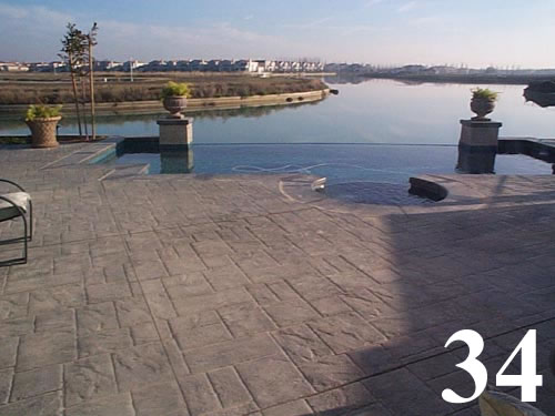 Medium ashlar slate pool deck and cantilever, highlighted with Apex penetrating stain and seal process.