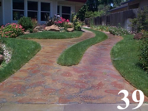 Driveway section is color hardened plum, and antiqued with gray penetrating sealer.